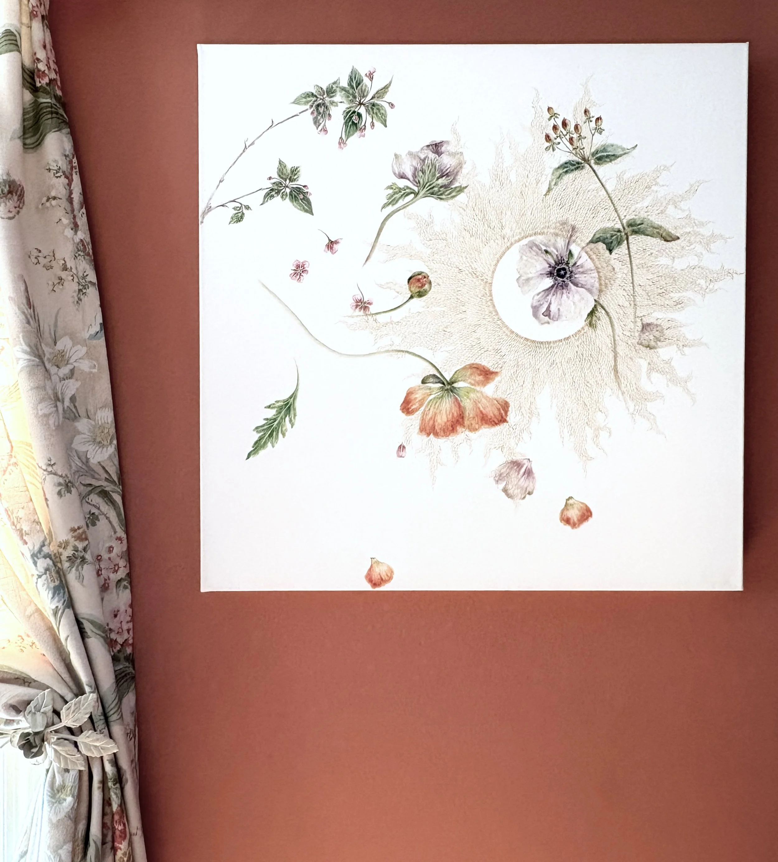 Inspired by generations of creative women in my family, these botanical paintings unfold as quiet memoirs - visual meditations on growth, memory, and place. Each piece reflects the life cycle of plants as a parallel to human experience, serving as a gentle record of connection, possibility, and continuity.