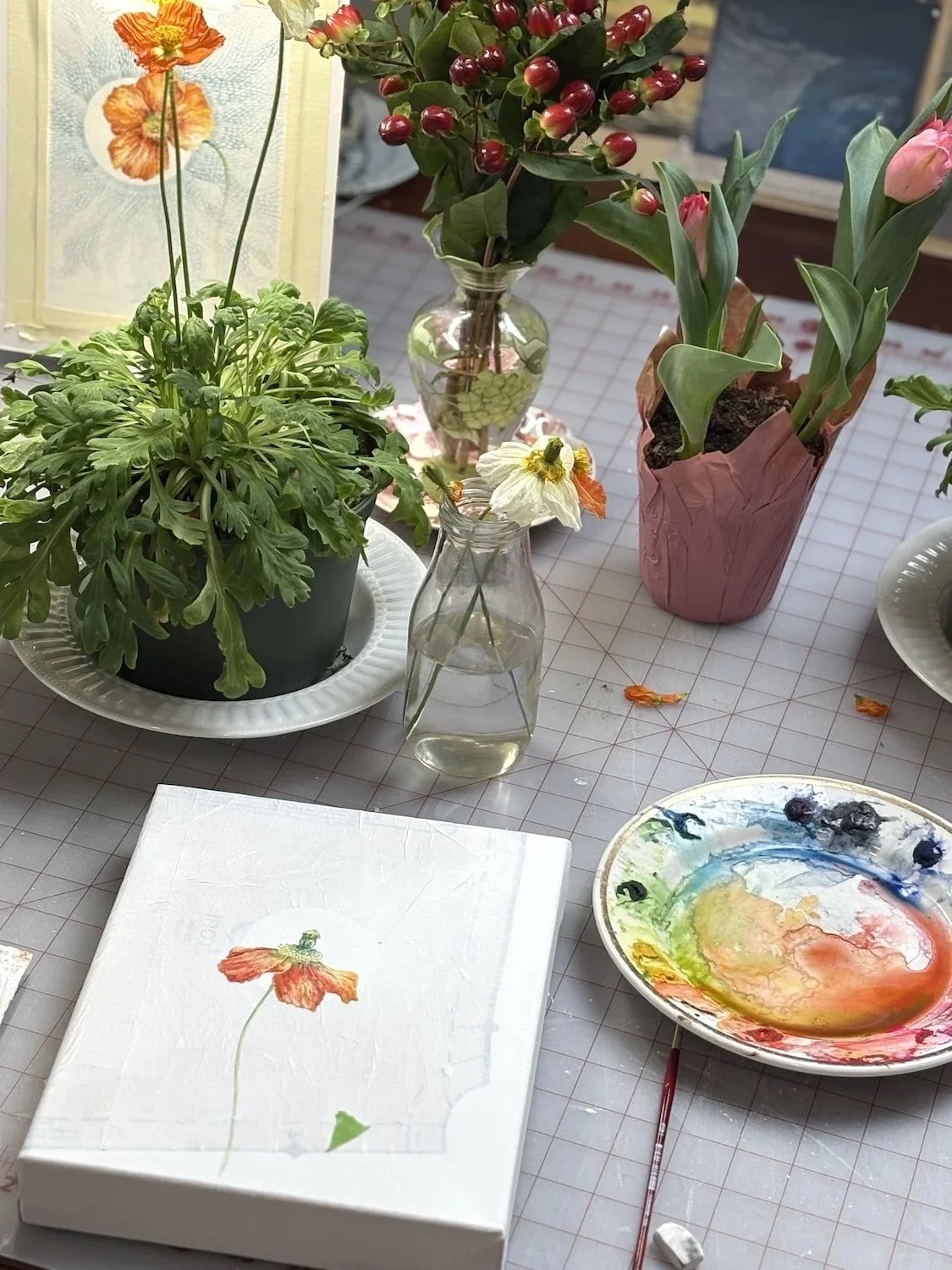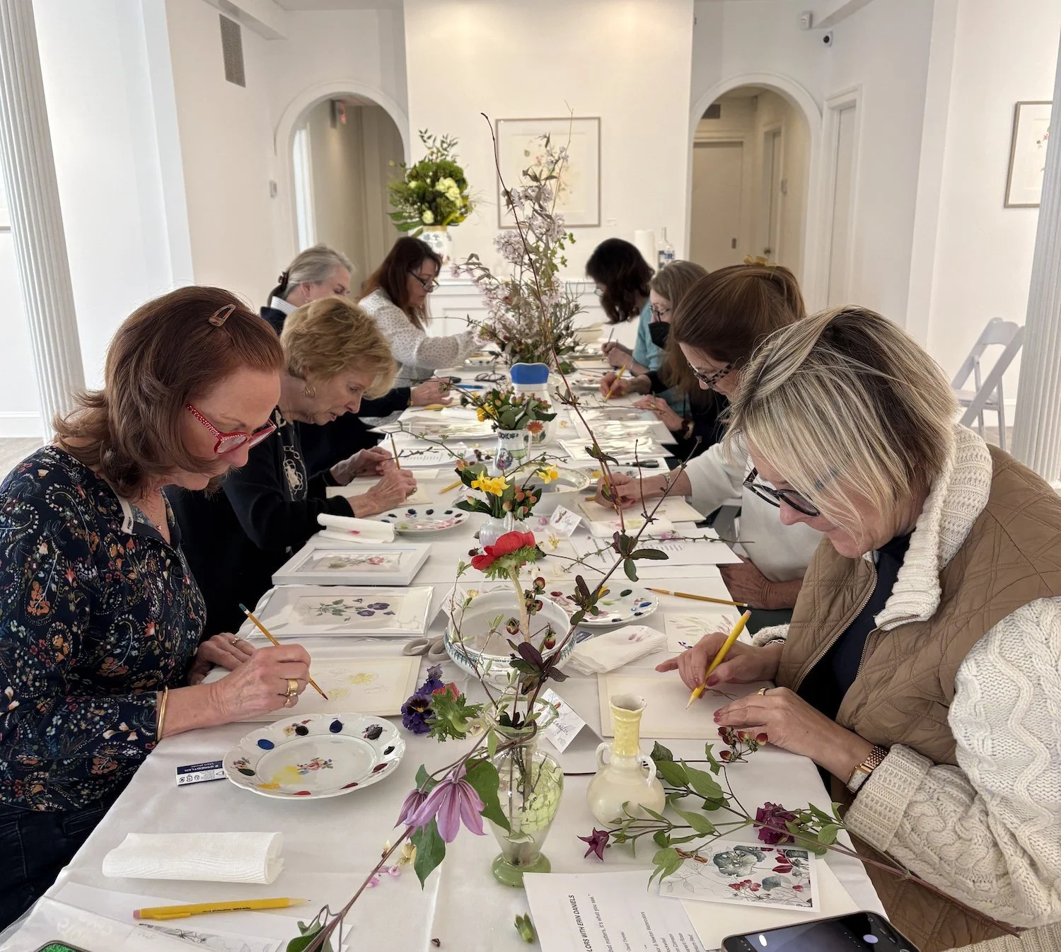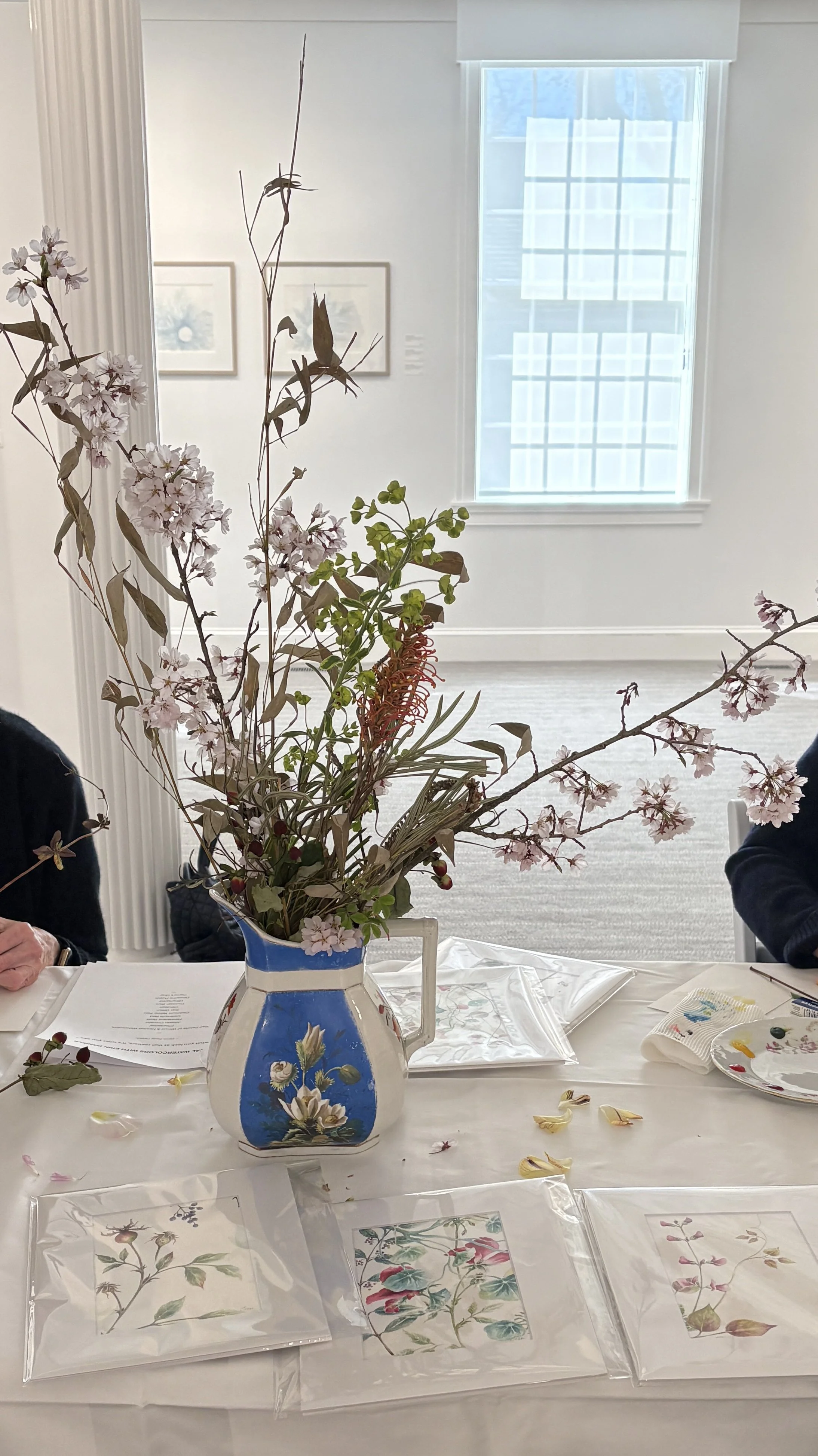 I shared my studio process and preferred materials, then guided by careful observation and a sense of quiet curiosity, we sketched and painted fresh seasonal blooms using pencil and watercolor.
